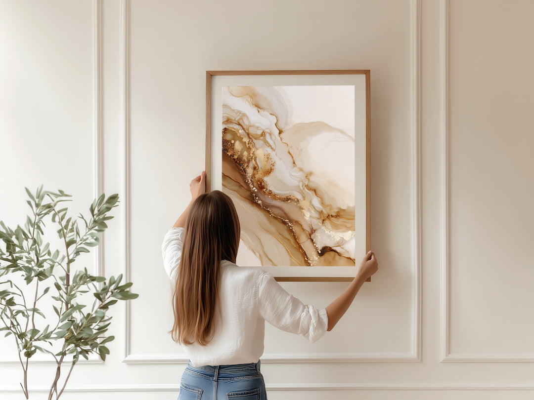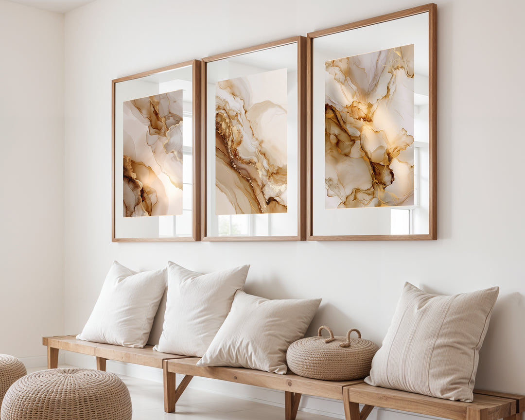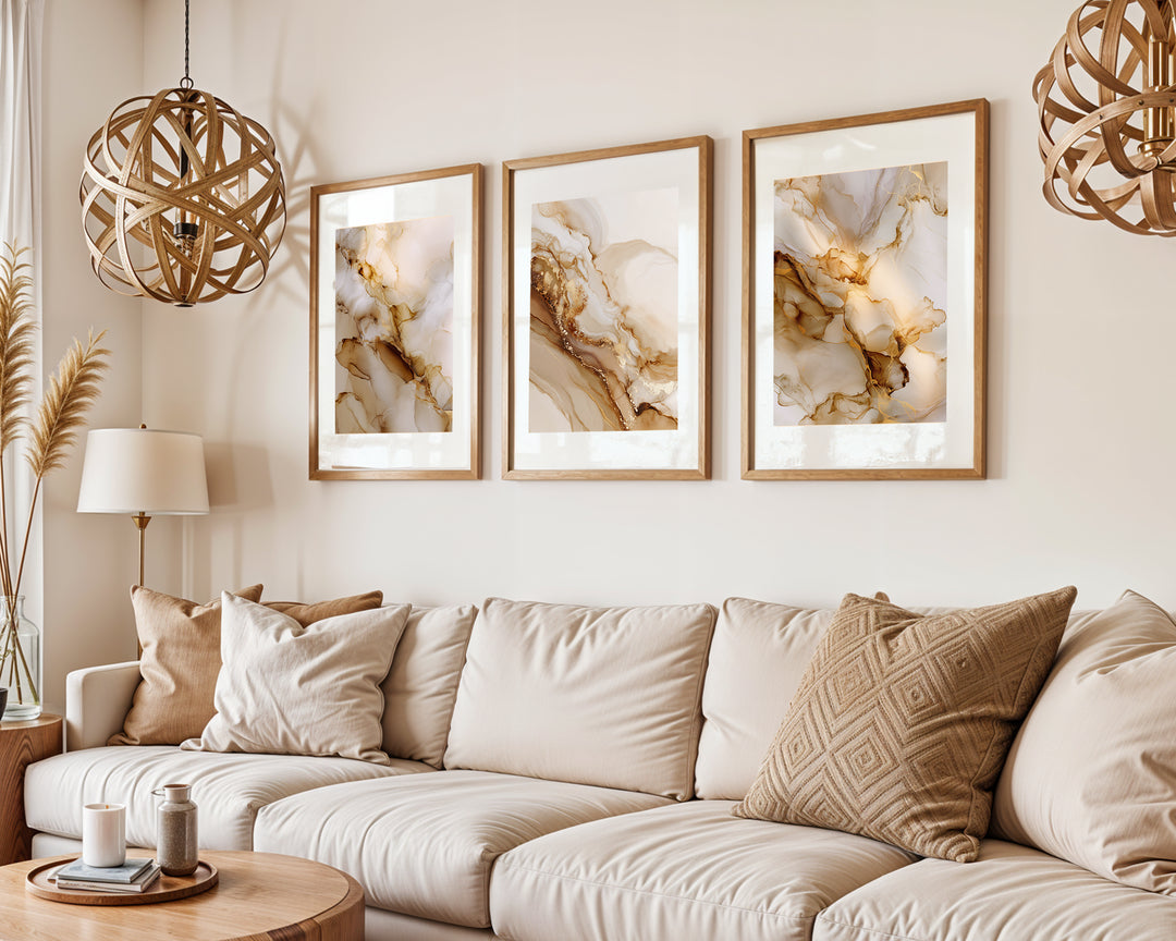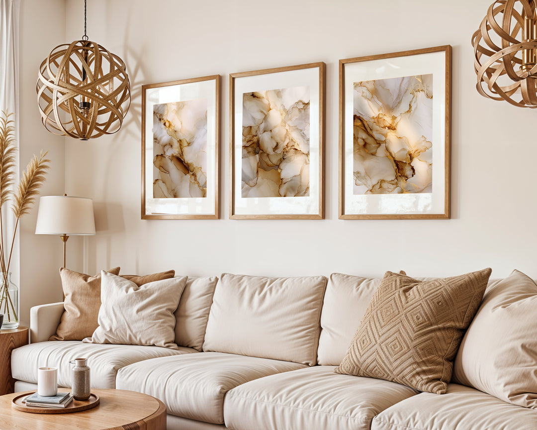 Skab ro og varme i dit hjem med plakater i tidløse gyldne nuancer.